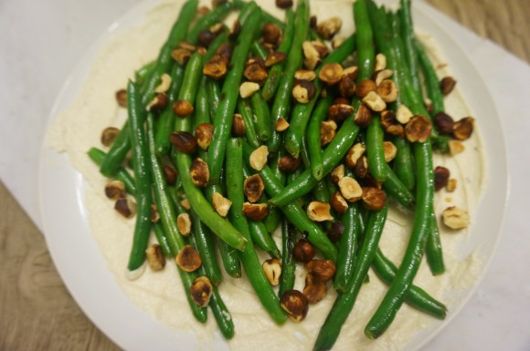 When I think of making green beans, I either jump to the soy or lemon preparations. Don’t get me wrong- these are two great ways to prepare them, but I thought it was time to add another option to the rotation. Enter, these, prepared with toasted hazelnuts and an amazing tahini spread, courtesy of an adapted recipe from Dining In. The best part? It’s bizarrely quick and easy to make!