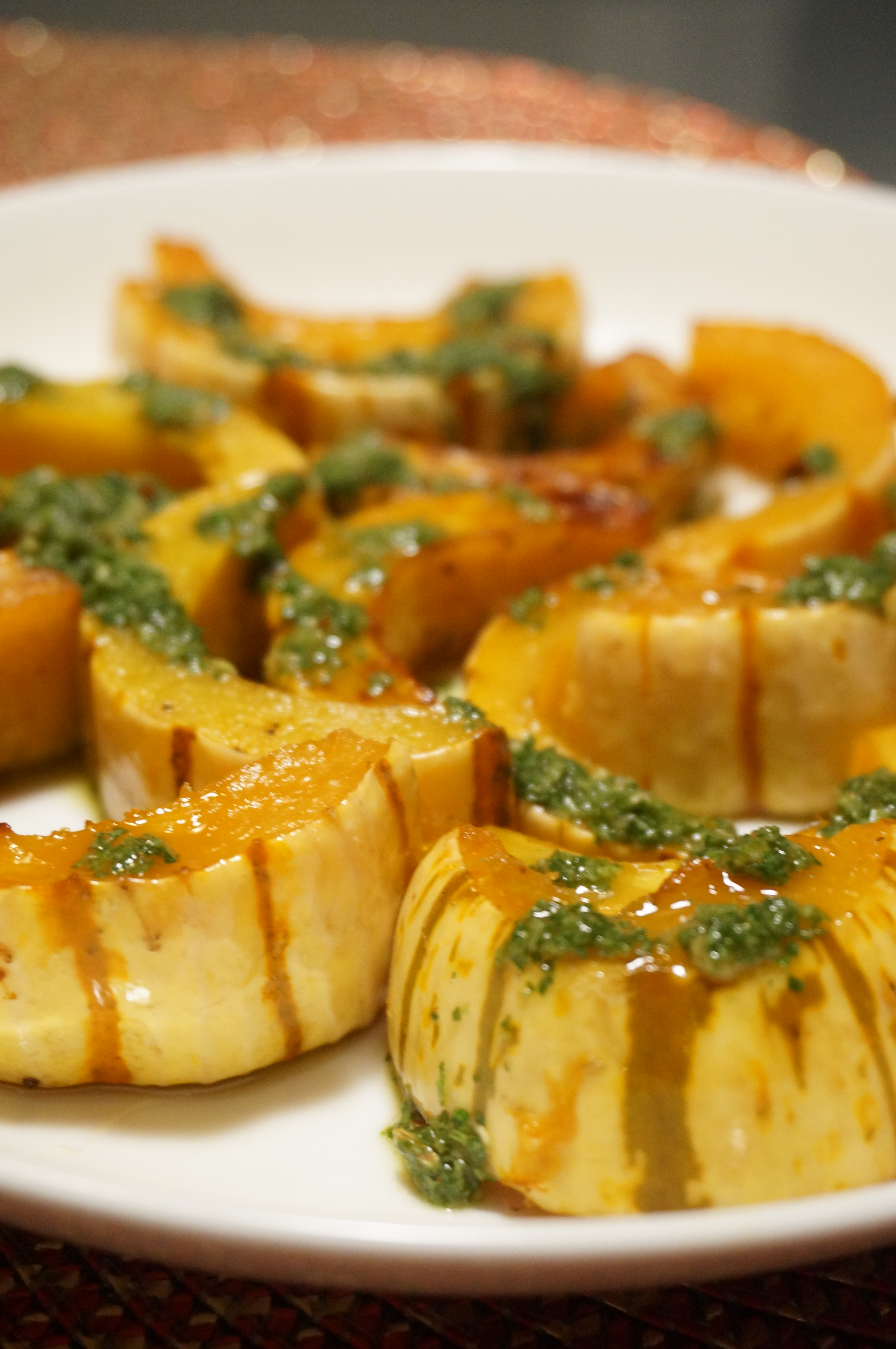 I am a sweet potato fiend, so have been trying to branch out into squashes to diversify my winter sides. Little did I know, delicata squash, the first squash I tried branching out to, was known as “sweet potato squash.” Par for the course, I guess.