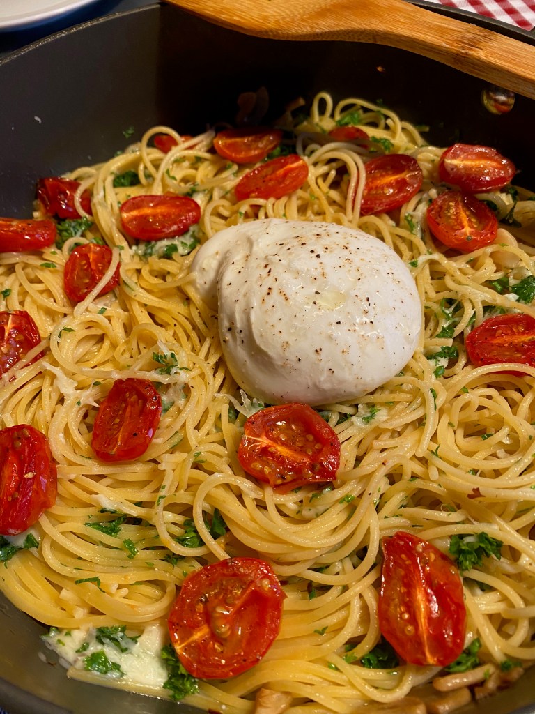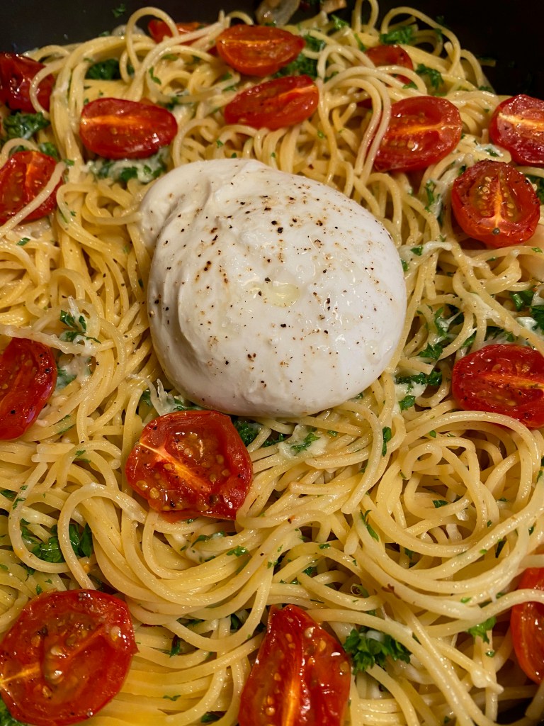One reply on “Burrata and Tomato Spaghetti Aglio e Olio”