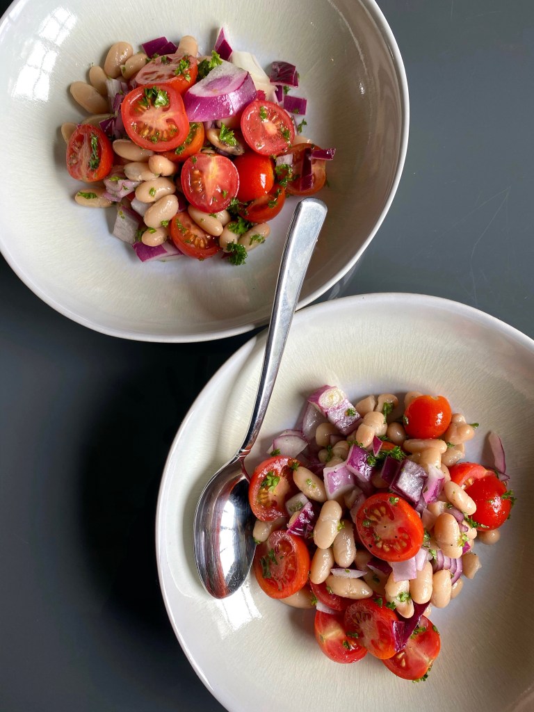 Monday. A time to restart. No better way than with this white bean salad my best friend’s mom taught me. It’s incredible alone, atop greens, or as a side to chicken or fish. Best part? It takes maybe 5 minutes to make.