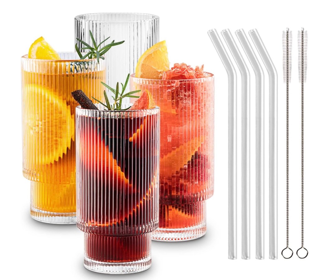 I tend to keep to these four glasses as my go-to rotation. I find between water, juice, lattes, matcha, wine, cocktails, and mocktails- these cover any presentation I might have in mind!
