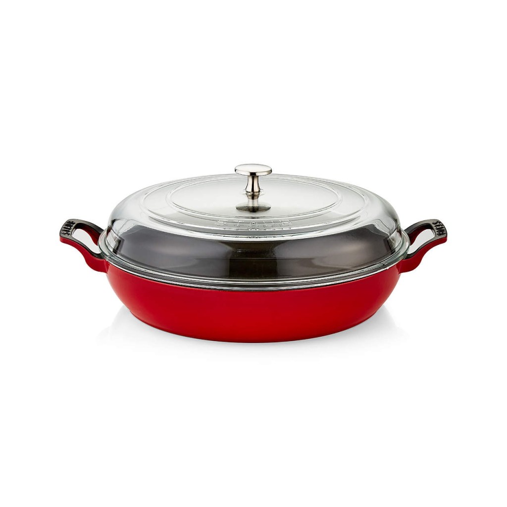 When it comes to cookware, I tend to stick to two brands: Staub (higher end, think: a less well known Le Creuset) and Lodge (great, reliable cast iron). For a cohesive look, I recommend picking one color and sticking to it. I always buy red!
