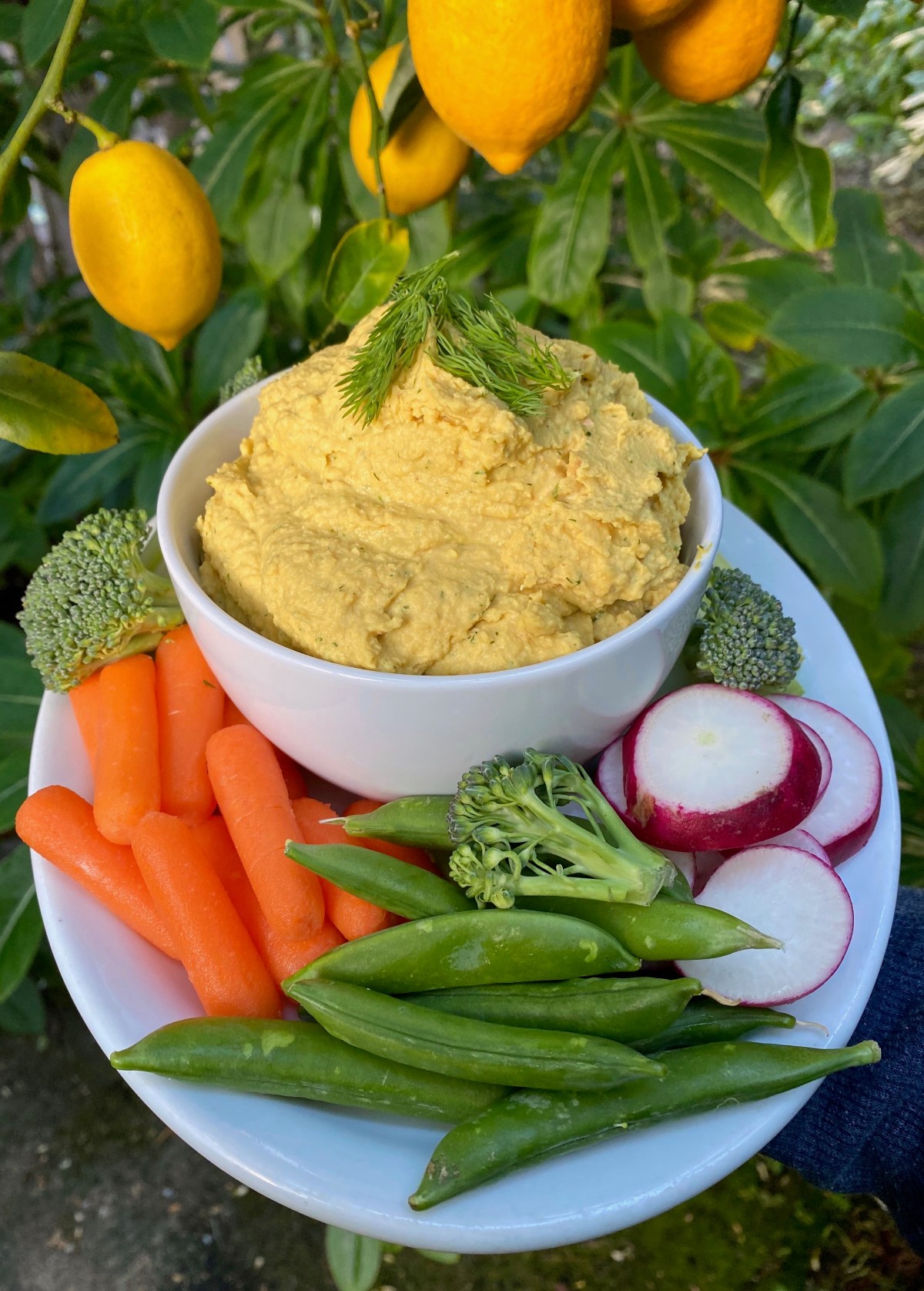 Homemade hummus is super easy and customizable. This is lemon and dill since that’s what I have on hand… but the possibilities are endless!